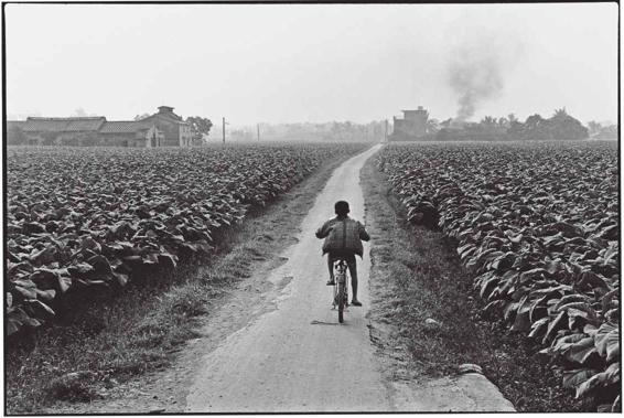 没想到,一出庄头却豁然开朗,仿佛世外桃源。田里的作物是我首次见识的烟叶,造型别致的烟楼疏疏落落地点缀其中,烘烤烟叶的香味随着袅袅青烟飘逸四方,真是山水画里的景色啊!我找了一处定点,把田埂落在构图的正当中,只要有人入镜,就会是张好照片。