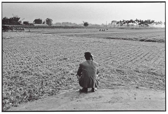稻子刚割完,正值农闲。一位西装打扮、梳理素净的村民,漫步在自家门前的晒谷埕,举目望着养家活口的田园。虽然优哉游哉,一蹲,农夫本色立刻现形。长年的粗重劳作,已使庄稼人养成“调整工序就是休息”的习惯。无论何时何地,一举一动莫不是作与息的二重奏。这光景我最明白,而农夫此刻的心情,我也猜出七八分了。