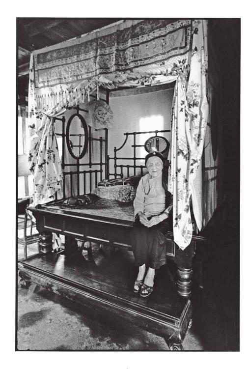 魏马良是彰化县永靖乡成美堂的最长者,当她的侄子领我到大宅院第二进的厢房时,我仿佛看到古代绣像木刻绘本的实景,眼前的人物穿着打扮、端坐的姿态、眠床的木雕、精致花饰的布帘……除了脚上的拖鞋,一切简直就是时空冻结了的过去。