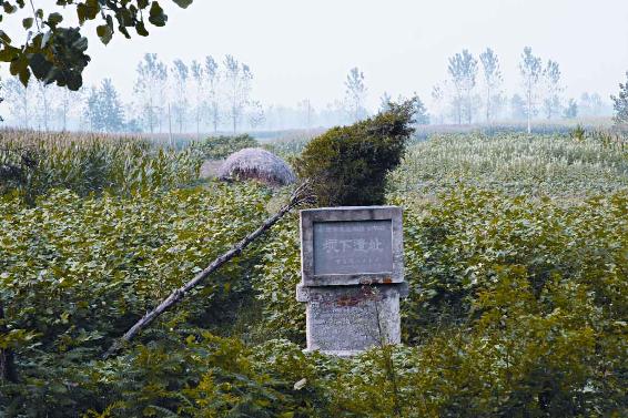 垓下在哪里?古往今来,多说在安徽省灵璧县东南。我去韦集镇,在一望无际的淮北原野上,寻得一块小小的石牌“垓下遗址”,由灵璧县人民政府所立。石牌在路北,无声无息,默默藏身于田地树丛里。路南开阔,平地中有连绵突起的土丘,传说是垓下之战死难将士的埋骨冢。小河中摸鱼的农夫对我说道:“进去过,是古墓,砖石砌成的,有壁画。”想来,当是东汉墓。
