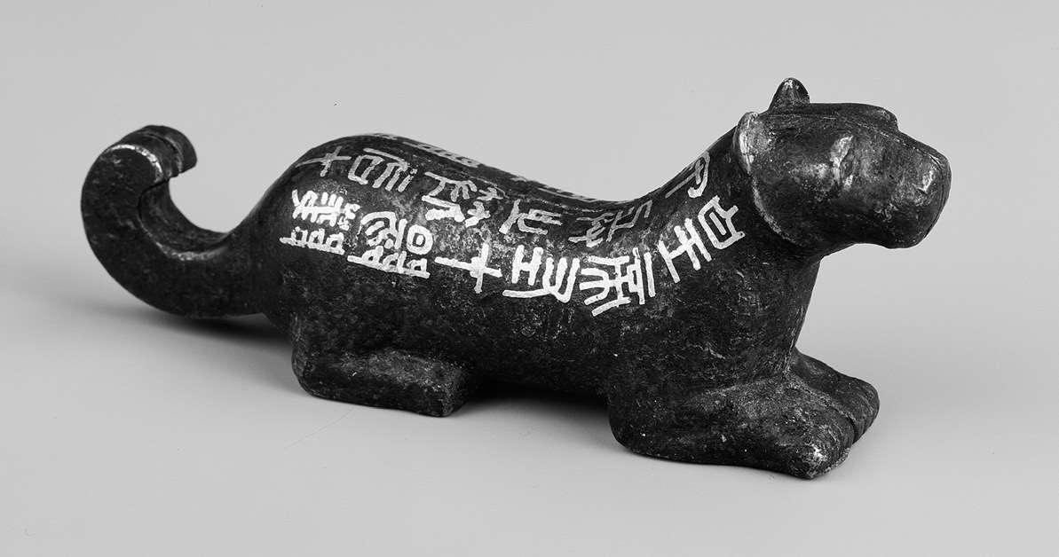 此符是秦始皇调动军队的凭证,用青铜铸成卧虎状,可中分为二。虎的左、右颈背各有相同的错金篆书铭文12字:“甲兵之符,右在皇帝,左在阳陵。”意为此兵符,右半存皇帝处,左半存驻扎阳陵(今陕西咸阳市东)的统兵将领处。调动军队时,由使臣持右半符验合,方能生效。