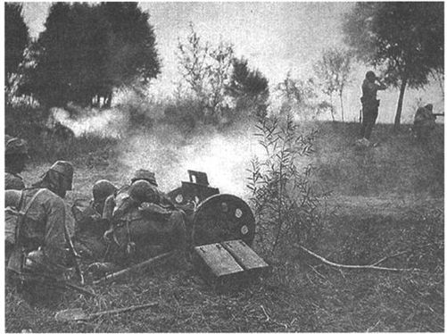 日本侵略军在用步兵炮对中国军队的阵地进行轰击