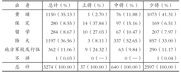 资料来源:根据军事委员会铨叙厅编《陆海空军军官佐任官名簿》第1册(编者印行,1936,第1—138页)收录资料计算得出。