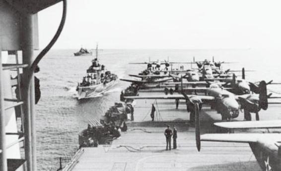 杜立特的轰炸机队,看到这个场面时,几乎没人相信这些巨大的飞机能从航空母舰上起飞——但是,杜立特他们做到了。
