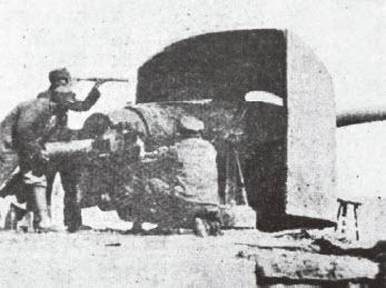 正在填弹发射的吴淞要塞中国官兵