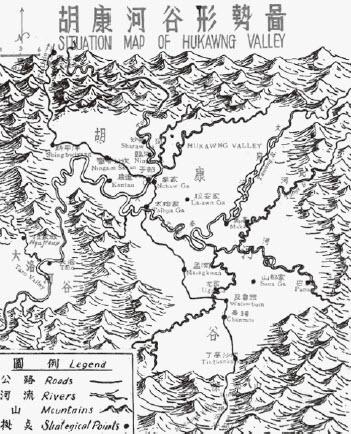 孟拱河谷地图,与上一张图合在一起就是胡康—孟拱河谷的全图。
