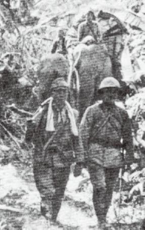 当时的日军第18师团,在胡康河谷节节设防,阻击东归心切的中国远征军,但无论兵器还是后勤都无法与美械化的中国新1军、新6军对抗,被打得不断败退。18师团的后方基地孟拱到前线仅仅依托一条简易公路进行补给。由于日军机械化程度不高,公路又不断被中美空军炸断,能够在林中小径行进的大象就成了重要的运输工具。