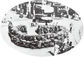 淞沪抗战后期,战斗进入巷战——1937年10月中国守军在上海构筑街垒奋勇抵抗。