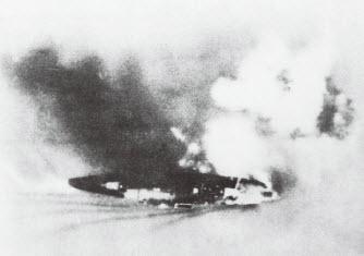 抗战开始后,中国海军在长江英勇与敌军作战,这是楚有号炮舰被日军飞机轰炸中弹起火瞬间。