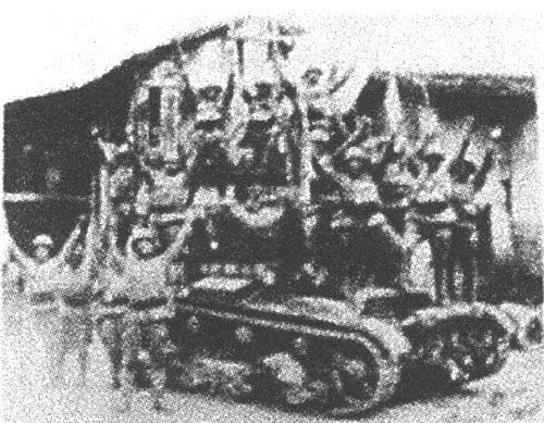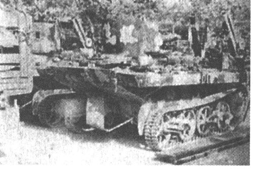 投入侦查作战损伤的一辆维克斯水陆两用战车。这辆战车和另一辆“大”战车组成“一大一小”的组合,出发侦查,遭到日军伏击,两车都被击毁,人员也遭到损失。这是该车拖回南宁待修。