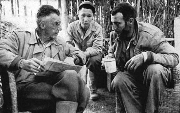 史迪威、布朗上校和孙立人。也可以看到布朗上校的大胡子。
