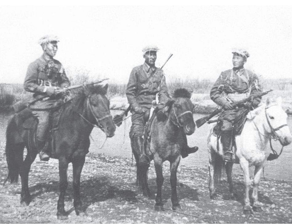 外蒙军骑兵。早在冷兵器时代,蒙古人就以骑射闻名,到了近现代,只是传统的弓箭被置换成了枪支。
