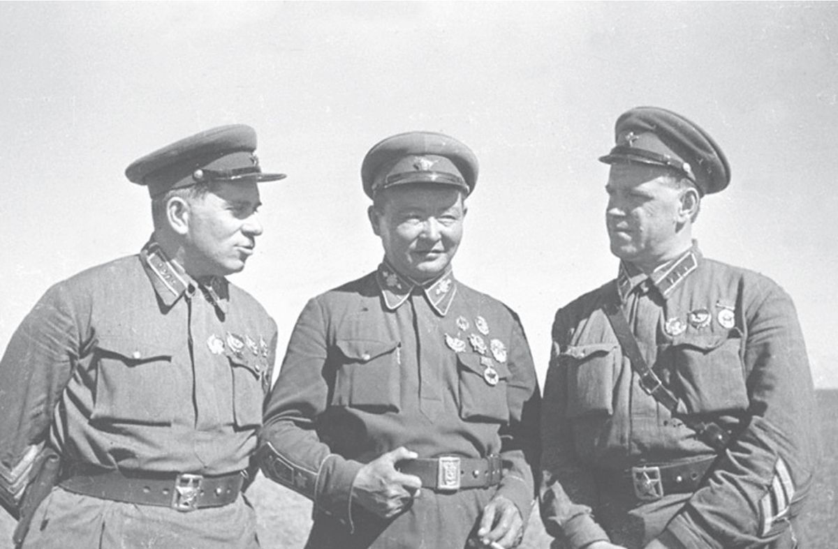 诺蒙坎战役中的施特恩、乔巴山和朱可夫(自左至右)。这时的施特恩主要负责协调苏蒙两军的活动和后勤工作,并因此在战后荣获苏联英雄称号。