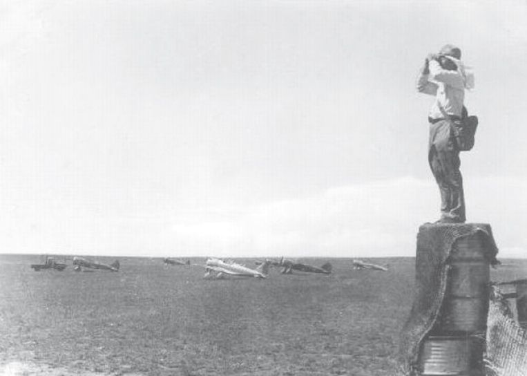 日军野战机场。观察员正站在油桶上进行观察,但其观察效果显然不如地理位置优越的外蒙古高台。