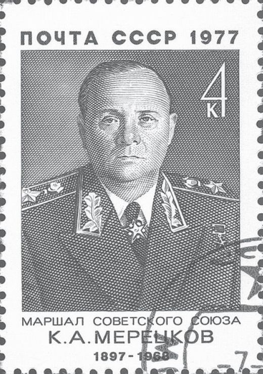 邮票上的梅列茨科夫元帅。梅列茨科夫资历较深,参加过俄国内战和西班牙内战,苏芬战争后曾在短期内被斯大林提拔为苏军总参谋长。