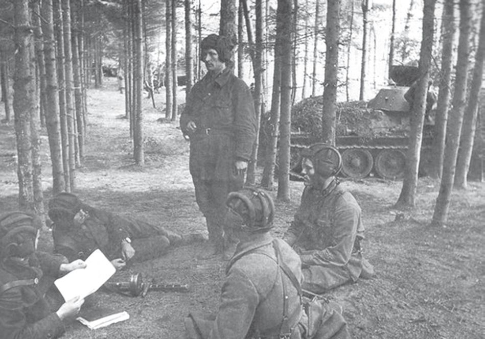 火线入党,苏联红军中经常可以见到的情景。图中坦克部队的党组织正在审议坦克手的入党申请。