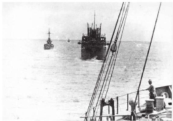 “能登丸”燃起熊熊烈火并随即沉没,这艘运输舰所装的卡车、马匹和武器弹药都还没有运上码头。面对这一情景,友近急得直搓手,但又无能为力。