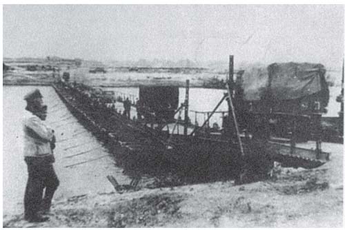 德军工兵正在顿河上搭建桥梁。