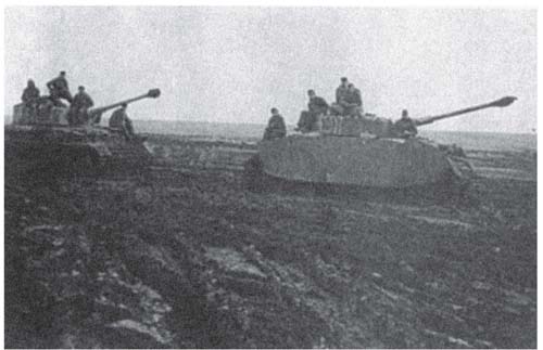 德军士兵跟随着一辆新式的“费迪南德”发起进攻,这种75吨重的坦克歼击车安装着88毫米口径的火炮。