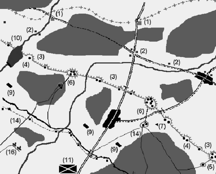 (2)支援哨,位于边界内5公里处,任务是阻滞敌方进攻,为主防线赢得准备时间。