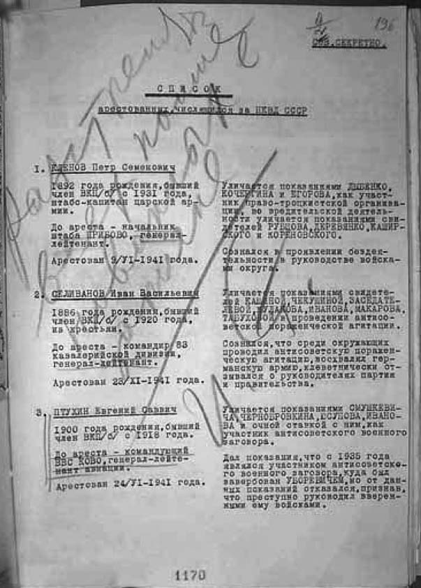 在后来解密的苏联档案中,人们见到一份1942年1月29日贝利亚给斯大林的报告,列出拟处决的46人名单,斯大林在上面大笔一挥:“Расстрелять всех поименованных в записке. И. Ст.”(枪毙名单上所有的人)。“И. Ст.”即约瑟夫·斯大林(Иосиф Сталин)之略。