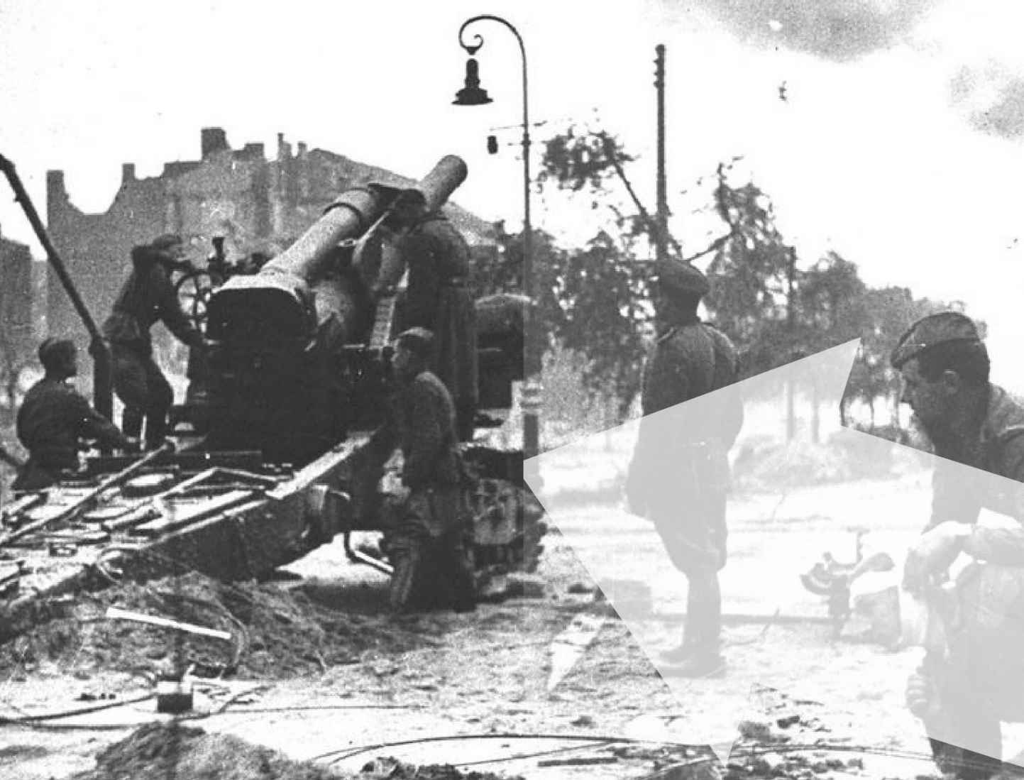 德军设置在柏林街头的“豹”式坦克炮塔堡垒,炮塔下有砖石或圆木修建的地下工事,可储存弹药或安置人员。在柏林城西北部,作为苏联第2坦克集团军的工兵军官,谢别列夫上校向家中写的信充分说明了现在柏林的局势:“写这封信的时候,我正在柏林的一座高大建筑内,同几个军官一起发布上级的命令,传令兵和信号兵不停地在我眼前穿梭。士兵们冲进一个又一个建筑,他们小心地前行,而我们也即将攻入柏林的中心区域。一些负隅顽抗的德国守军从门和窗户后面向我们的坦克发起攻击,可是我们的坦克兵非常有办法,他们避开了街道中心,而是沿着旁边的人行道行进,然后冲着街道对面,用榴弹炮和机枪开火,而另一侧人行道上的坦克同样也向相反的方向射击。这样一来,躲在门和窗户后面的德国人只能拼命逃跑,死伤惨重。与此同时,在一座很大的院落里,我们的后勤兵在补给车上给饥饿的德国市民分发食物。由于饥饿和战火的摧残,他们看起来是那么窘迫、绝望与无助。曾经美丽的城市,现在到处都是障碍物和被毁坏的车辆。所有的房子都是空的,而那些活着的人基本上都躲到地下室去了。现在正是家乡收获谷物的时候,我们真希望早点儿回去与你们见面,战争马上就要结束了,我们非常高兴。”