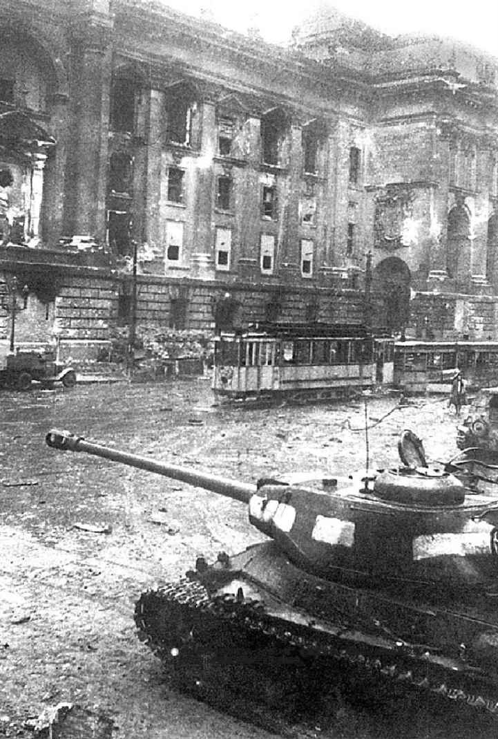 柏林战役中的苏军JS-2“斯大林”式重型坦克,其炮塔上的白色条纹是为了防止美英航空兵误击的识别标志。经过讨论,巴塞与温克将军一致通过,第9集团军应向柏林南部的松树林正西方向突围,与第12集团军会师,然后一同向易北河撤退。但是,巴塞的后卫部队一直与朱可夫的部队交战,行进缓慢。他告诉温克将军,在苏军的炮火之下,他的集团军现在“就像在地上爬”。然而2位将军都不愿执行希特勒下达的命令,也不想为救援柏林而牺牲更多的生命。4月25日深夜,巴塞得到了“可自行决定最佳攻击方向”的授权。从那时起,他实行了一种“纳尔斯尼”战术,即拒绝接收各种无线电信号。当然,实际上德军的无线电通信也已经崩溃,早已接收不到什么信号了。