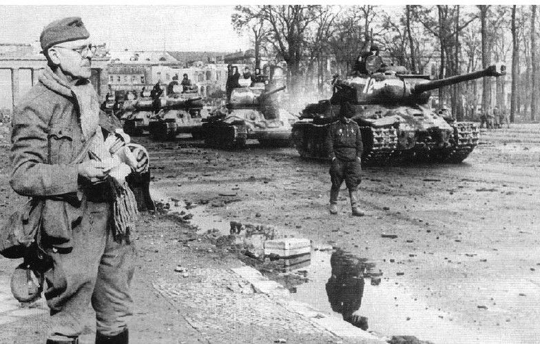1945年5月,柏林,1名德军老兵看着苏军JS-2“斯大林”式重型坦克的纵队开过勃兰登堡门,战争对于他来说已经结束了。结婚典礼