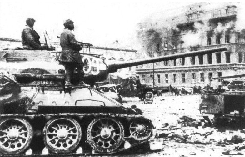 停在第三帝国国会大厦附近的苏军T-34∕85中型坦克