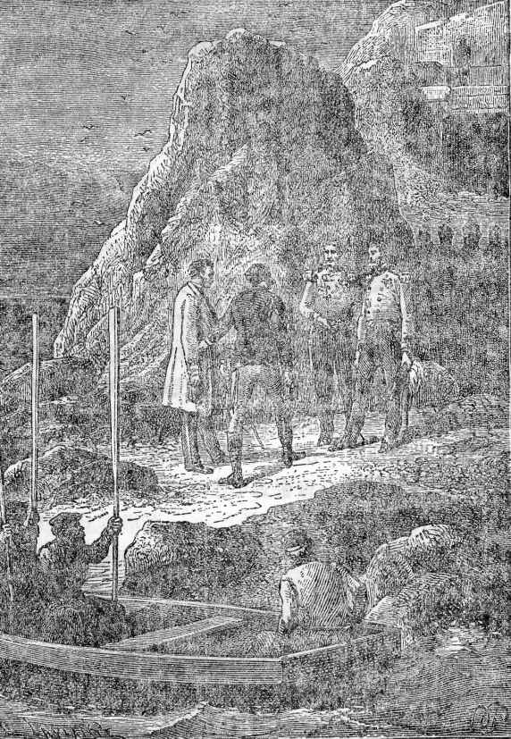 在这个小岛的南面,有一个可以容纳四艘渔船停泊的小海湾。只要不刮起猛烈的南风和西风,对于“多布里纳号”来说,这将是一个安全的港湾。“多布里纳号”缓缓驶入了小海湾,然后抛下锚链,放下了小艇。铁马斯彻夫伯爵和塞尔瓦达克上尉登上小艇,径直向小岛驶来。