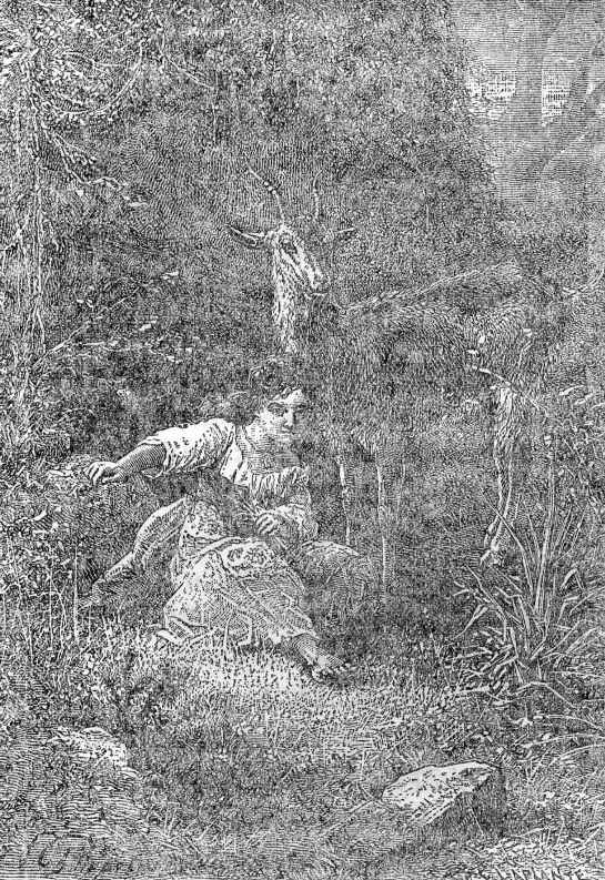 洞口正坐着一位七八岁的小姑娘,两只乌黑的大眼睛格外明亮,头上披着金色的长发。这个孩子漂亮极了,简直就像是穆勒(1)笔下的杰作“圣母升天”中的天使。她透过灌木丛,胆怯地看着两位陌生的客人。