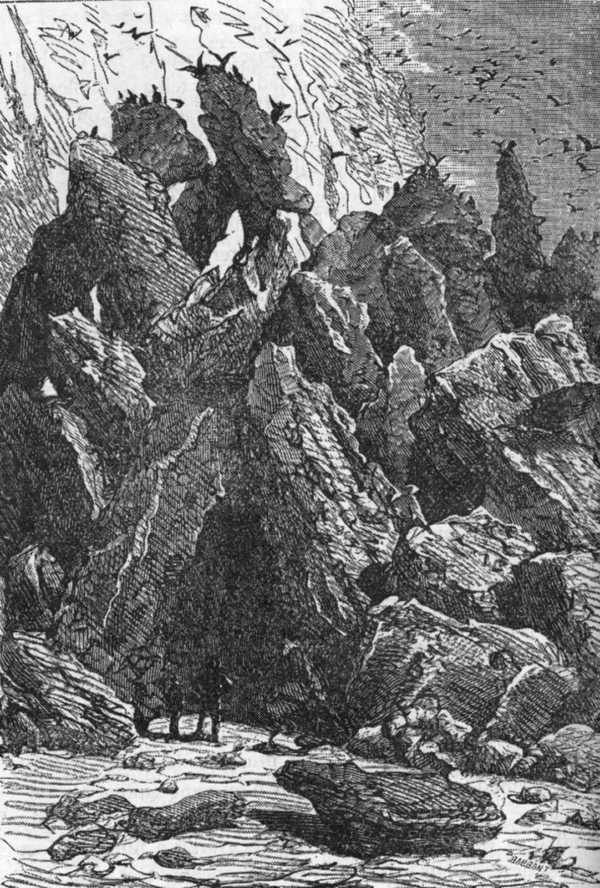钻进岩石堆以后,潘克洛夫和赫伯特沿着沙路走了很远。因为阳光可以从石缝照射进来,里面的光线并不显得暗,有些石块像奇迹似地保持着平衡。它的平面图特别类似印刷体中的“&”字,也就是拉丁文“和”字的缩写。伴随着阳光,风也钻了进来,形成了一般的过堂风,当然,外面的寒气也跟着风钻了进来。但是,水手却认为“石窟”里是可以居住的,只要用沙石把一部分石缝堵住就可以。这话不假,他们如果想利用它的下面安身,只需要把上面的那个口堵住,把强烈的西风和南风挡在外面就可以。