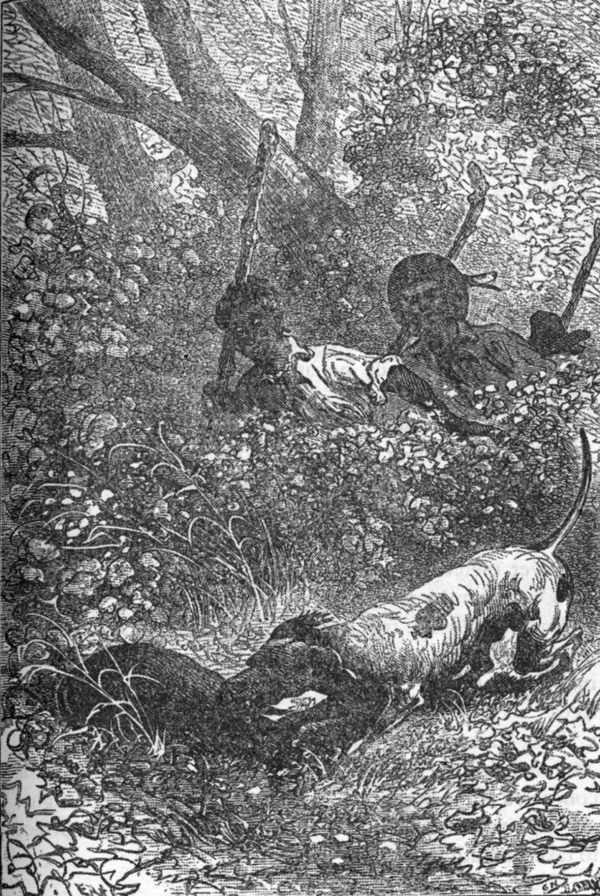 多亏了聪明的畜生托普,它运用自己的直觉才帮助猎人们找到了回去的旧路。他们只用了半个小时就到达了河边。
