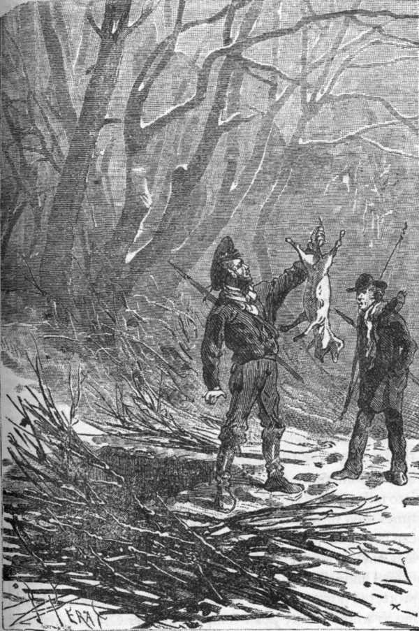 吉丁·史佩莱、潘克洛夫和赫伯特趁着这个机会急忙去察看他们的陷阱。积雪已经把陷阱给盖住了,好不容易才把它找了出来。他们还必须得非常小心,防着掉到里面,要是不幸掉进自己布置的陷阱里,不但非常危险,而且也未免太丢脸了!幸好这种倒霉的事情并没有让他们撞上,他们找到了陷阱,里面并没有什么猎物,还保持着它们原本的状态。但是附近的脚印却很多,其中的很多爪印看起来非常清楚。赫伯特肯定有猫科食肉兽类曾经从这里经过,由此也可以证实此前工程师的预测,林肯岛上确实存在着非常凶猛的野兽。这些动物毫无疑问是住在远西森林里的,只是因为饥饿才冒险来到了眺望岗。也许它们已经嗅到了“花岗石宫”里居住着人类。