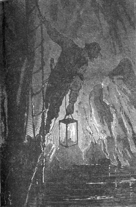 有了升降机之后软梯已经很久没有使用了。井口直径将近6英尺,工程师把软梯的上端牢牢系在井口,把另一端放到了井里,然后拿着一把左轮枪,在腰间插了一把弯刀,点着灯下到了井里。