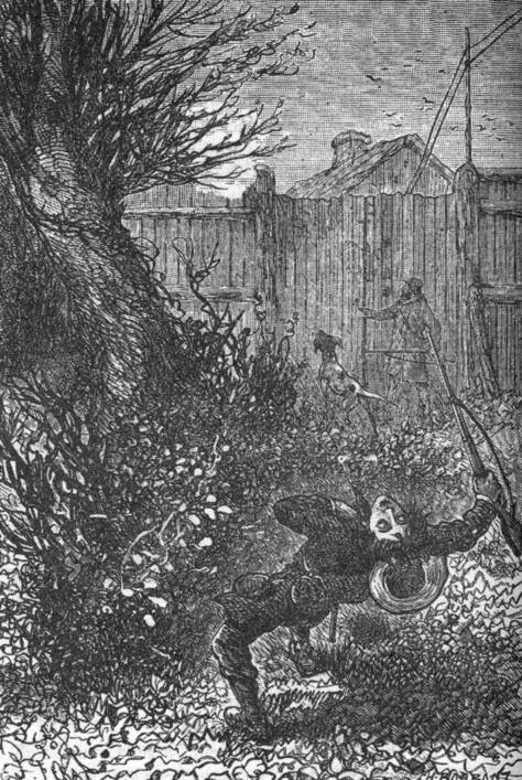 史密斯把门上的内闩拔开,正准备推门进去,托普在此时忽然大叫起来。只听见“砰”一声枪响,接着传来了一声惨叫,赫伯特被一颗子弹打中了,他直直地倒了下去。