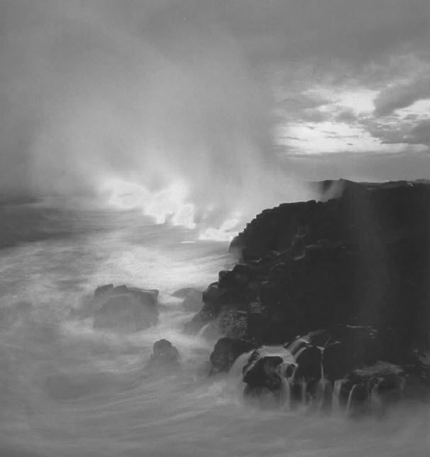 这场水火之间的搏斗是壮丽的奇观!笔墨怎能写出这样惊心动魄的场面呢?沸腾的岩浆流入湖中,将湖水蒸发成水汽,发出咝咝声。空中盘旋直上的蒸汽升到了高空,如同一个大锅炉的汽门突然被打开。但是无论湖里有多少水,最后它总是会干涸,因为湖水已无法补充了,而夹带着白热物质的岩浆却源源不断地流入湖中。