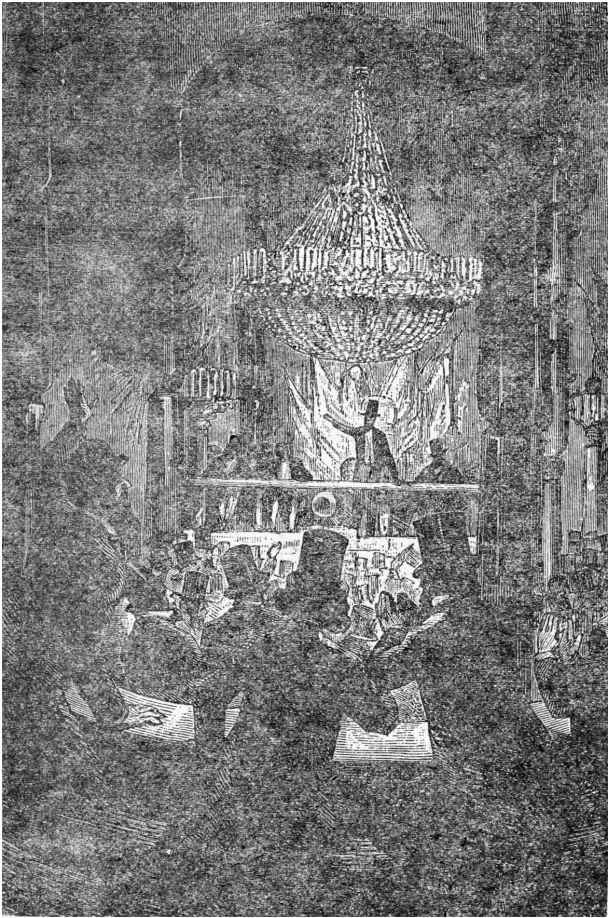 此言一出,就听见上千个屏着呼吸的胸腔里发出了无数惊叹。接着是一阵死一样的寂静,就像电闪雷鸣之前的那种极度的寂静。果然,雷电爆发了。这是一场雷鸣般的掌声、欢呼声和喝彩声,震的大厅都颤动了。主席想接着讲下去,但已无法继续了。足足过了有十分钟,喧闹声才有所安静,这才又听到了主席的嗓音。