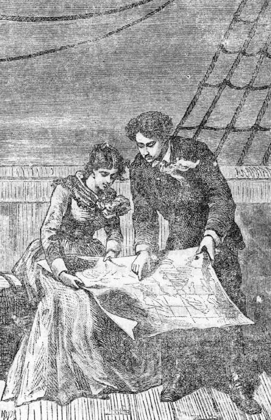 韦尔登夫人仔细端详着海图上的复活节岛,它在海图上只不过用一个不易觉察的点来表示。