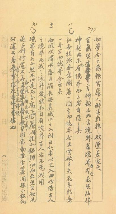 手稿本为王国维最初写作《人间词话》之稿本,凡一百二十五则。手稿本前三十则主要是对传统诗词理论的辨析与引申,第三十一则提出境界说之后,才有对境界的诠释和分类等条目。自第三十一则后,近现代西方的哲学美学话语以一种参证的方式融入进来。