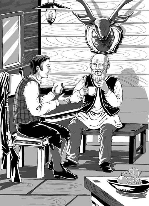“那是因为他是个精明的庄稼汉。大约在二十五年前,他的房子被火烧了,他就跑来找我的先父,说:‘尼古拉·库兹米奇,请允许我搬到您家林子里沼地上去吧。我交租钱,很高的租钱。’‘可你为什么要搬到沼地上去?’‘我要这样!不过,尼古拉·库兹米奇老爷,什么活儿也别派给我,您就酌情规定租金吧。’‘一年交五十卢布吧!’‘好的。’‘你要当心,我可是不准拖欠!’‘知道,不拖欠……’这么着,他就在沼地上住了下来。打那时起,人家就叫他霍尔霍尔是音译,本意是“黄鼠狼”。了。”