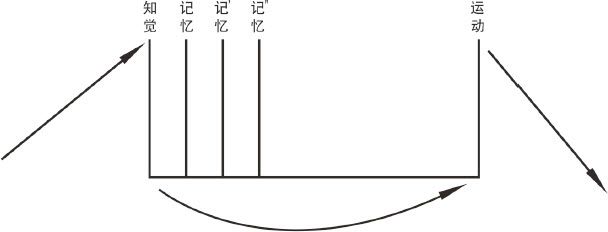 抛开生物学意义的研究不谈,我尝试着用心理学(纯精神层面)的概念工具模拟这种精神机制。首先这样设想,精神机制是由一些复杂的系统组合而成的。这些系统可以按照时间顺序排列,组成了一条传导途径。类比生物学中的“反射弧”概念,我假设精神机制前后存在感觉端和运动端,前者有一个接受知觉的系统,后者有一个可以产生运动活动的系统。精神过程(类似生物学中的神经兴奋)只能从感觉端进入,从运动端输出。