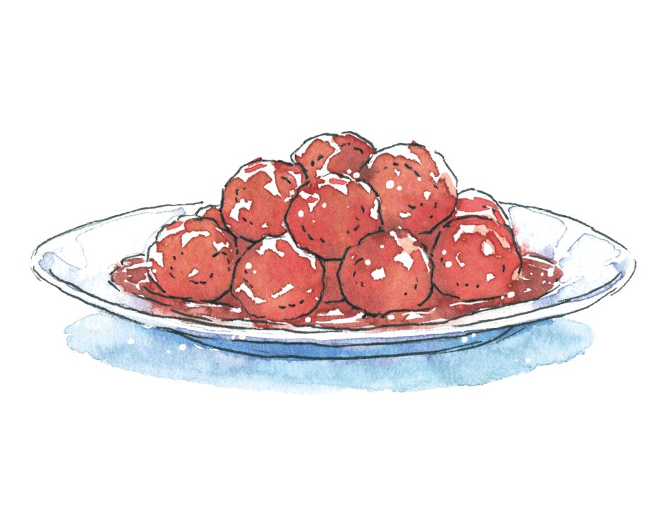 将肉切成大骨牌般大小的片,在白水中滚煮二三十次,起锅;用半斤熟菜油,将肉放入炸透,起锅,用冷水浸泡,肉皮就皱了,捞起来;将肉放入锅中,用半斤酒、一小杯清酱和半斤水,煮得烂熟。