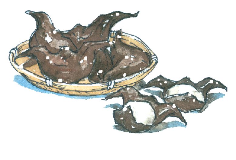 煨煮新鲜菱角,要用鸡汤滚煮,上菜时将汤水倒出一半。荷花池中刚刚采摘的菱角才新鲜,浮出水面的菱角才嫩。加新出的板栗和白果煨煮烂熟,尤其好吃。或者加糖熬煮,也可以。当成点心也可以。