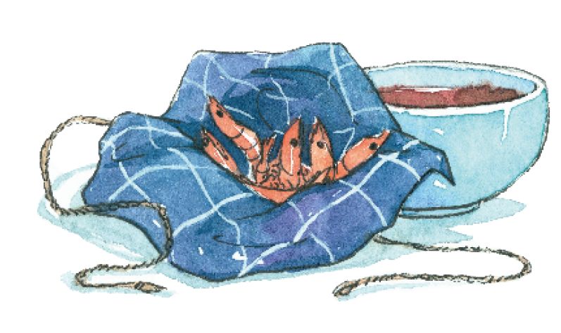 买几斤虾子,和酱油一起入锅熬煮,起锅后用布沥出酱油,再用布包好虾子,一起放入装满油的罐子中。
