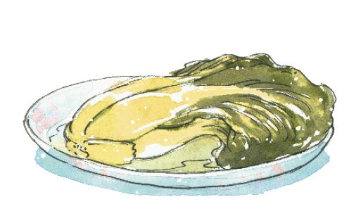 冬菜心风干后稍微腌制一下,加糖、醋和芥末,连卤汁一起放入罐子里,稍微加一点酱油也可以。宴席中酒足饭饱之后,吃酸菜可以醒脾胃、解酒。