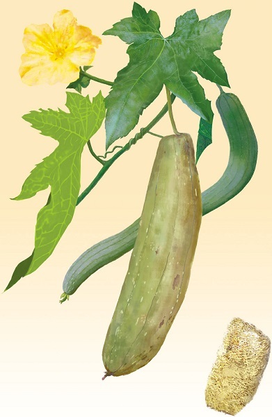 丝瓜,在唐宋以前从未听说过,现在大江南北到处都有,是家常菜。二月份播种,等苗长出来时须用树枝、竹枝引瓜蔓。叶子有蜀葵那样大,但有一些分叉,并且上面有细毛刺,叶子榨汁可以做绿色的染料;瓜茎有棱;每年六七月开黄色的花;瓜一般有一尺左右长,最大的有3~4尺,深绿色的瓜外面有皱纹,瓜头有点像鳌头。