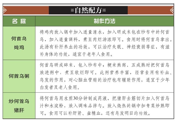 何首乌的有效成分有降低胆固醇、降低血脂的作用,可以强身健体、延缓衰老,还可以治疗脱发,有乌发的功效,此外对神经衰弱也有一定的疗效,能预防癌症。
