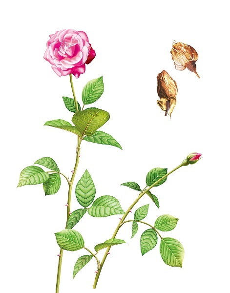 月季花有活血理气的功效,对肺结核、气管炎、消化不良、食欲不振、胃炎等病症均有一定的疗效。月季花对女性月经不调等妇科病也有一定作用。月季花的气味不仅芳香迷人,经常闻还有镇静安神的功效。