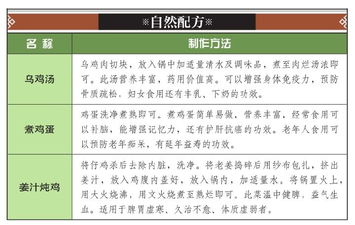 鸡肉有较好的滋补作用,其营养成分易吸收,因此经常食用有强身健体的功效,营养不良、身体虚弱、心血管疾病患者尤适宜食用,特别是对血压低的人有好处。